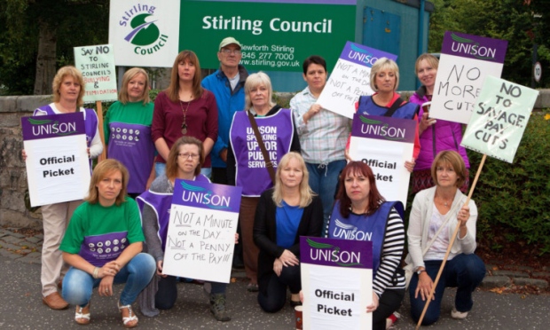 Council services in the Stirling area were badly affected yesterday by the first all-out strike to hit a Scottish authority since local government reorganisation three years ago. More than 1,000 members of the public service union, Unison, took part in the action in protest at 20 compulsory redundancies which the council said are necessary to save £400,000 this year. Pickets were mounted on all the main council offices in Stirling and more than 200 banner-waving strikers marched from the council headquarters at Viewforth to a rally outside the Albert Hall. http://www.highbeam.com/doc/1P2-18659533.html