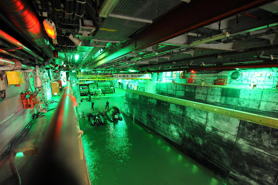 Royal Marines from J Company, 42 CDO preparing for an amphibious assault whilst onboard HMS Bulwark. The Marines used Landing Craft Utilities to transport them, their vehicles and equipment to shore from HMS Bulwark's landing dock. HMS Bulwark is currently carrying out Exercise Joint Warrior off the coast of Scotland.