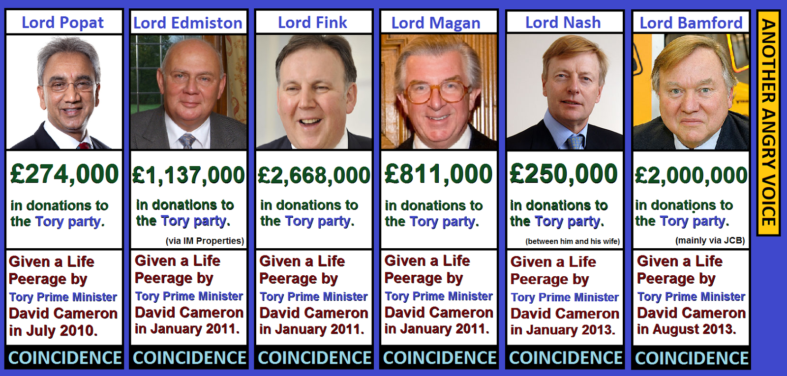 * Peter and Bella Stringfellow: He is a British businessman and nightclub owner who has an estimated net worth of $50 million. Personal donations: £2,340.00. Personal + company donations: £39,340.