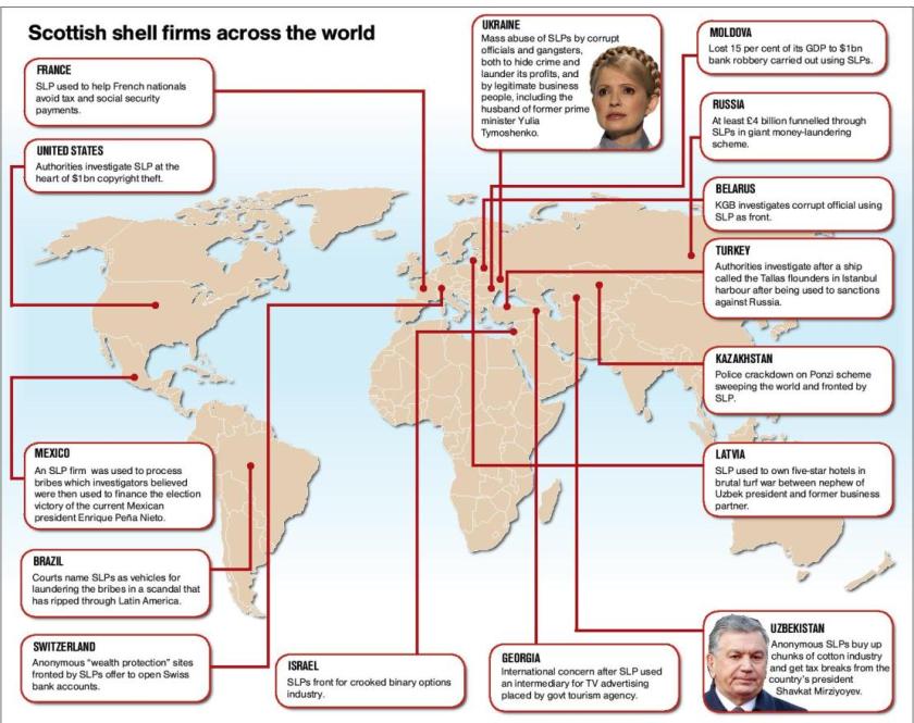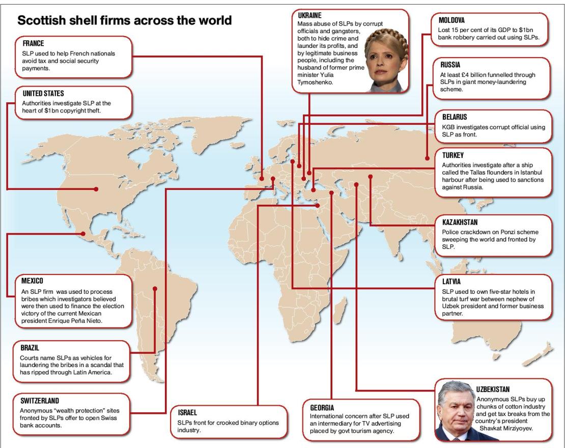 Scottish Limited Partnerships are notorious corporate entities whose true owners are easily disguised, making them perfect vehicles for money laundering. They have been used to launder an estimated $100 billion on behalf of ex-Soviet gangster-oligarchs. Governments all over the world have asked Police Scotland for assistance in tracking down their own stolen billions.