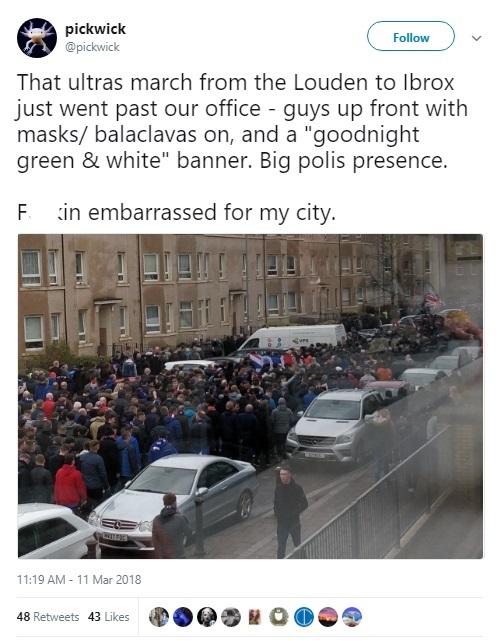 “The “Union Bears” organized illegal march on Sunday before the match ruined what should have been a great advert for Scottish football.