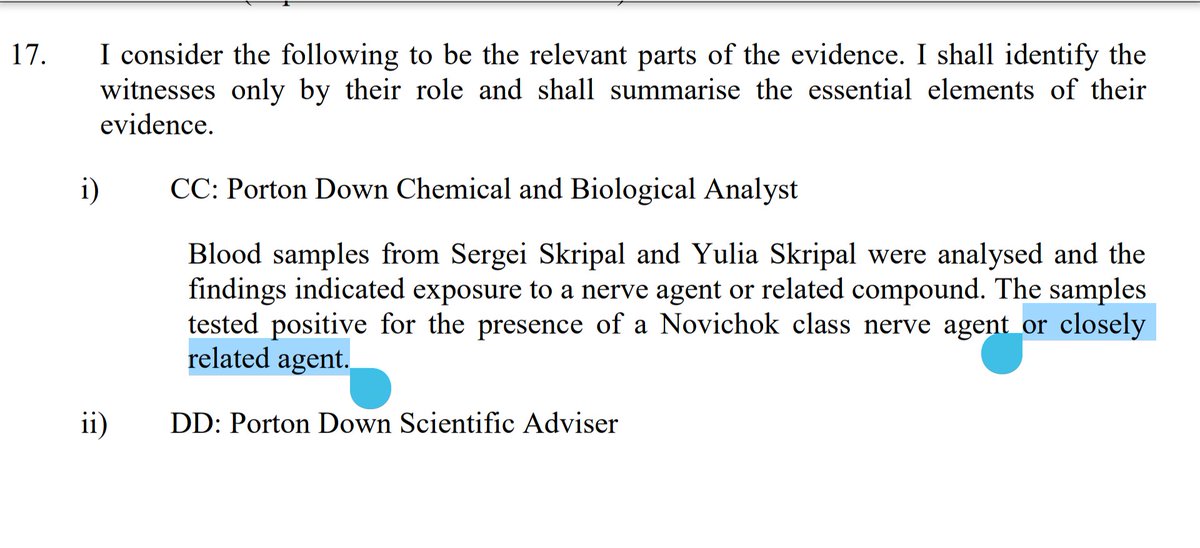 As recently as 2016 Dr Robin Black, Head of the Detection Laboratory at the UK’s only chemical weapons facility at Porton Down, a former colleague of Dr David Kelly, published in an extremely prestigious scientific journal that the evidence for the existence of Novichoks was scant and their composition unknown. Full report here: