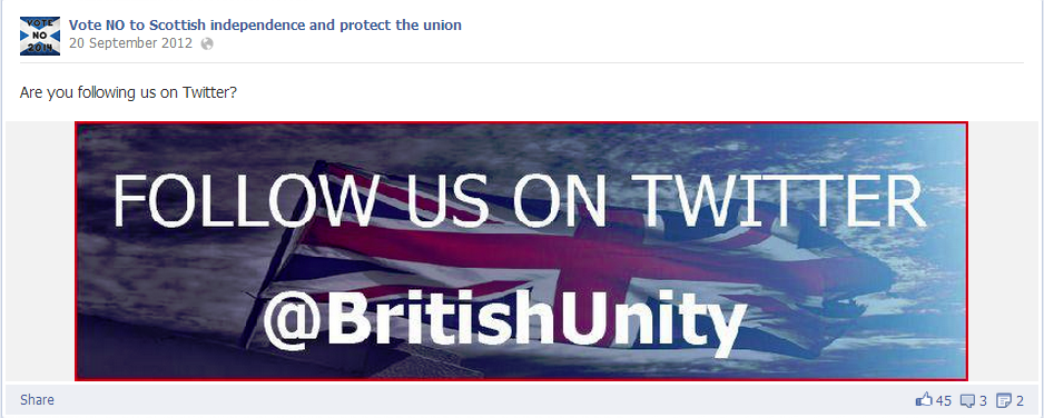 Andrew Skinner ran a Facebook page entitled “Vote No to Scottish Independence and Protect the Union”. However, it wasn’t always called that. He re-branded it, prior to that it was called “British Unity”.