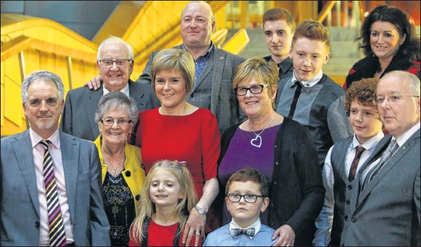 Clockwise from left: Robin Sturgeon, Harry Murrell, Jim Owens, Ethan Owens, 17, Cameron Coyne, 14, Gillian Owens, Ross Coyne, 12, husband Peter Murrell, Finlay Coyne, 8, Joan Sturgeon, Nicola Sturgeon, Harriet Owens, 8
