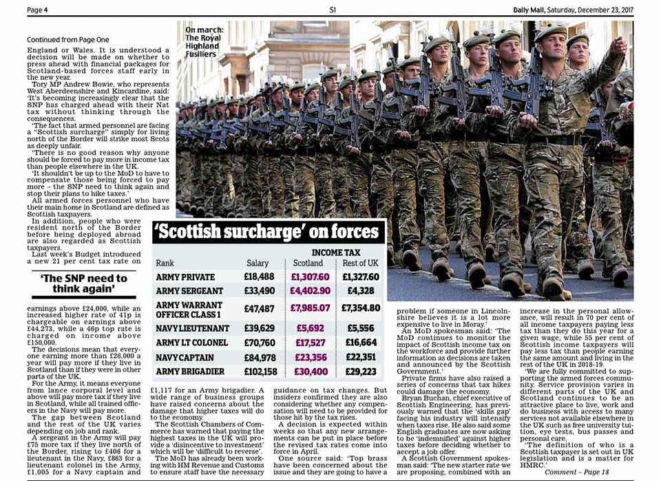 23 Dec 2017: Scottish income tax – Army at war over SNP taxes