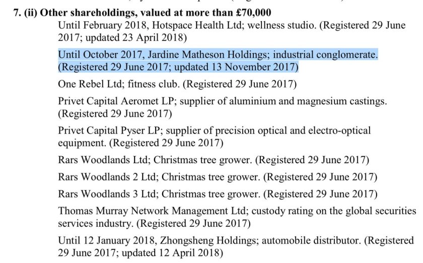 Scottish Tory MP has over £70,000 of shares invested in Jardine Matheson Holdings (JMH), which is incorporated in Bermuda.