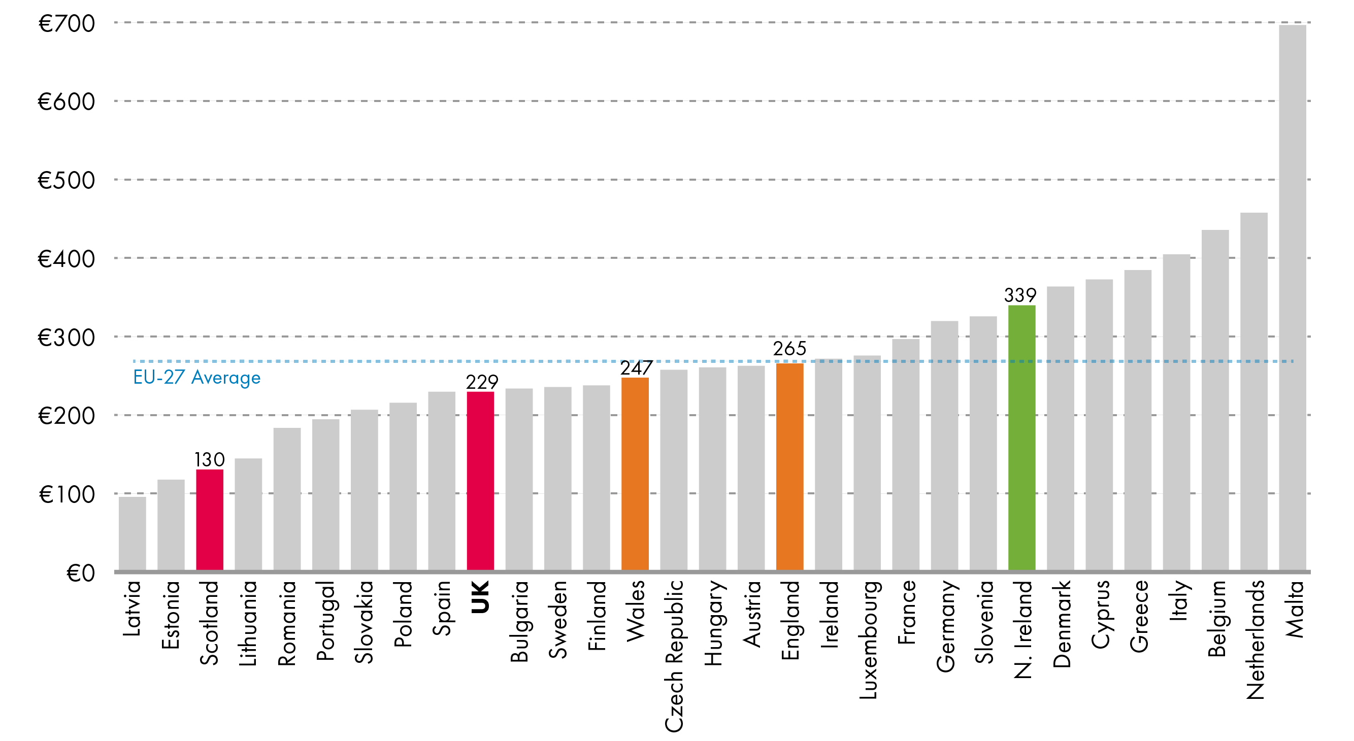 Scotland now has the lowest amount of direct farm funding, per hectare of farmland, in the EU.