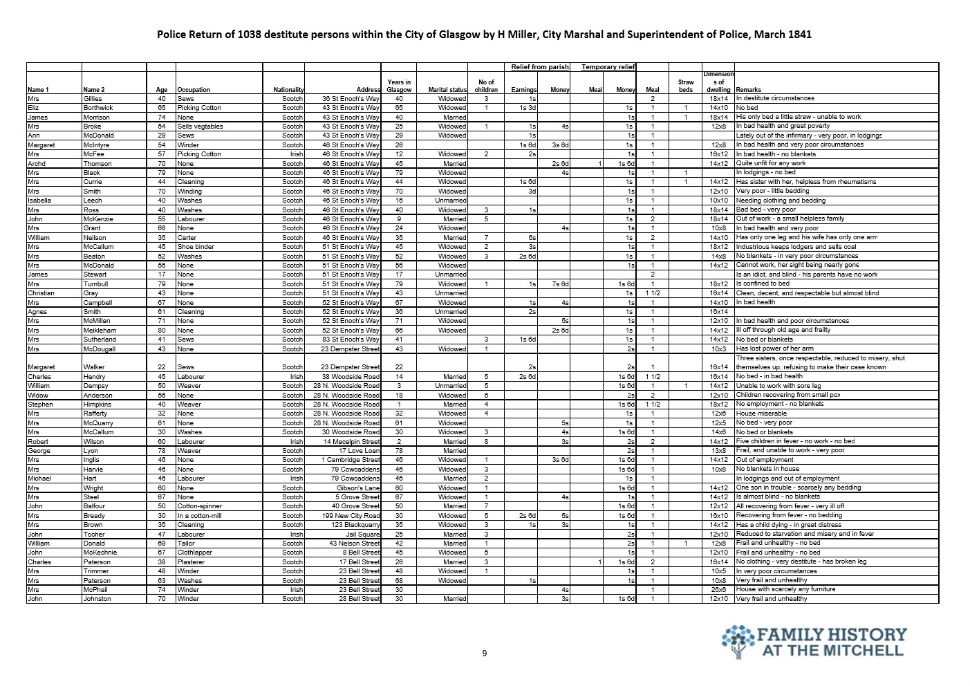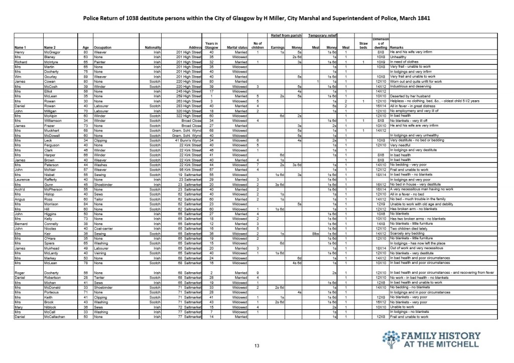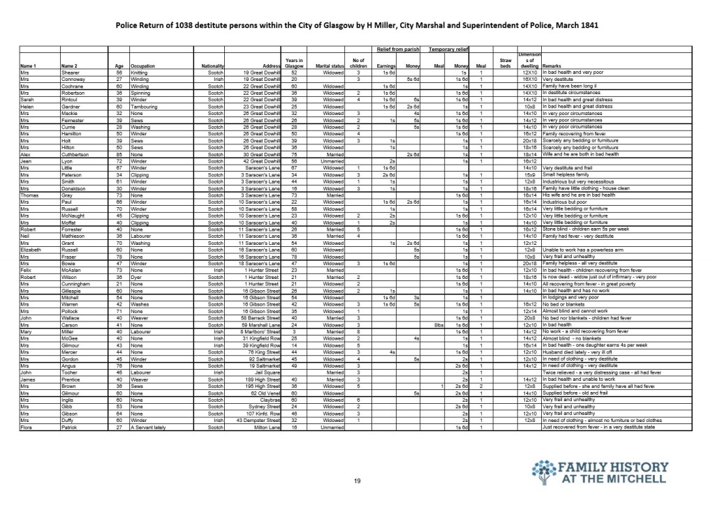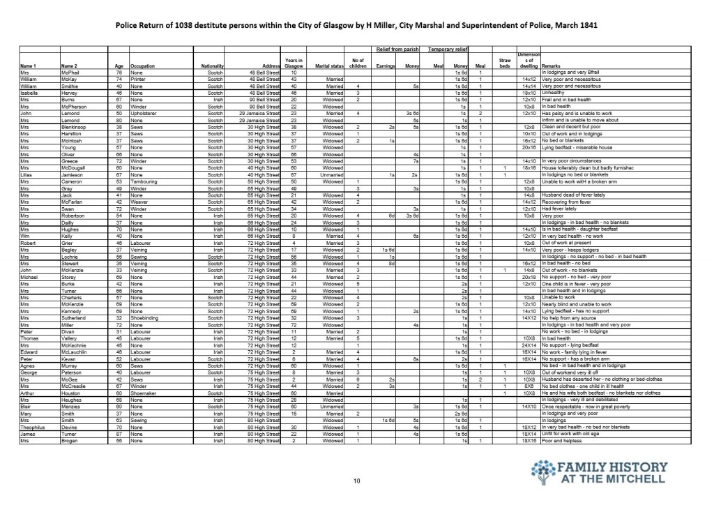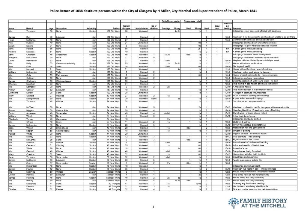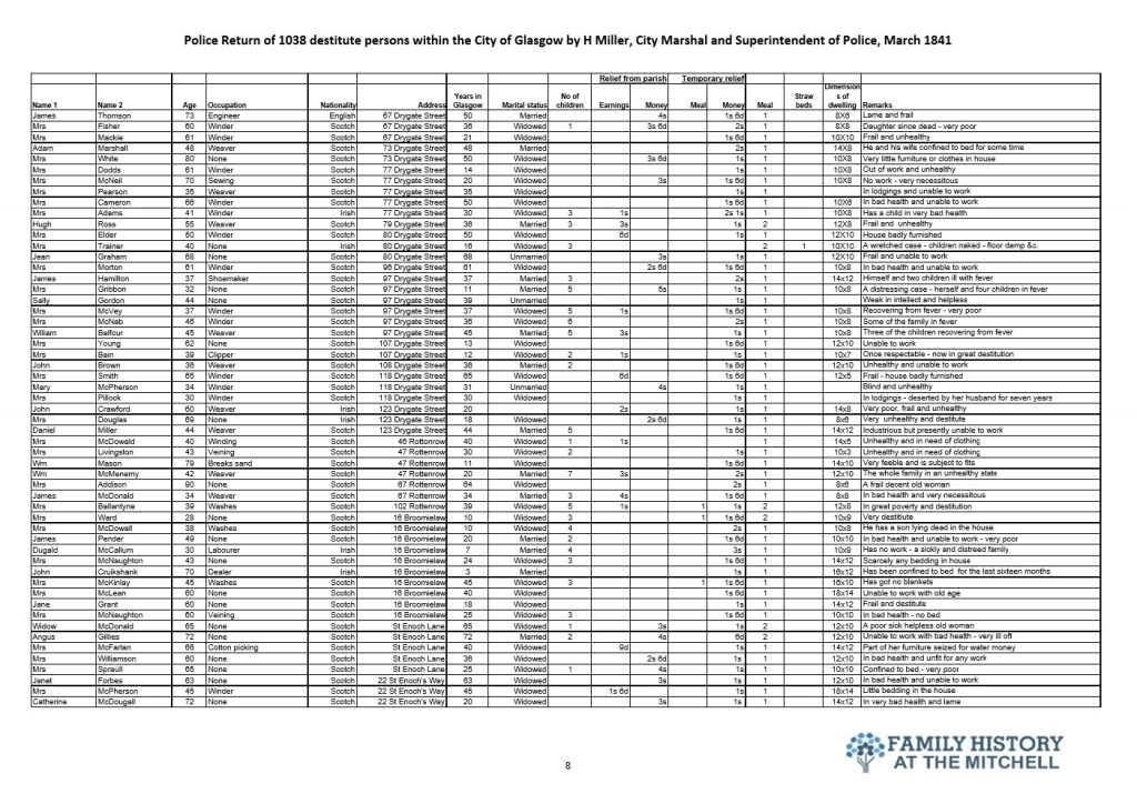 144 years after the signing of the Treaty of Union the widely promoted benefits to be gained by Scotland from placing their trust with the Westminster government were self evident in Glasgow. The police selected a few streets for a lifestyle analysis for the city fathers. The results told the true story. 182 years later a similar study would reveal that not a lot has changed.