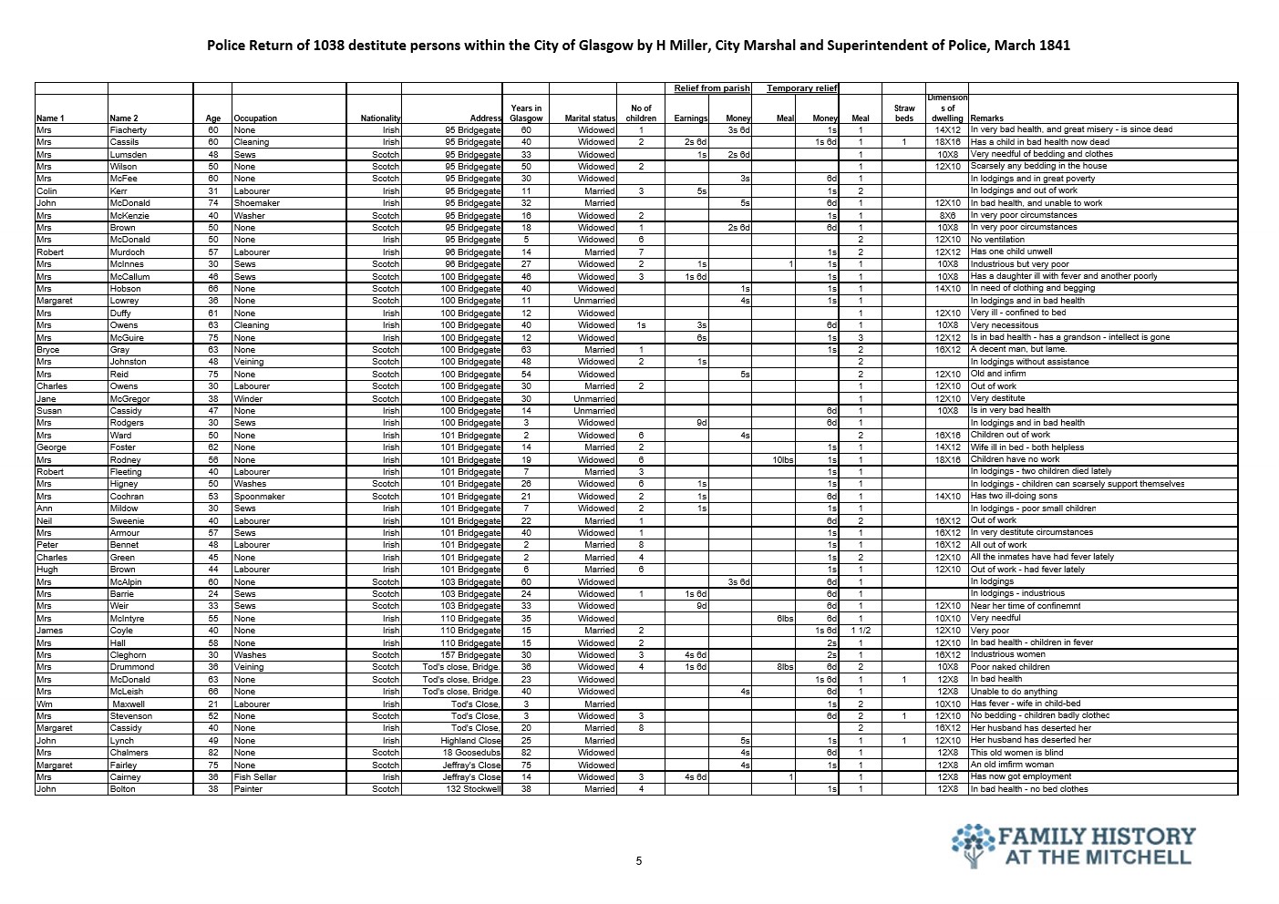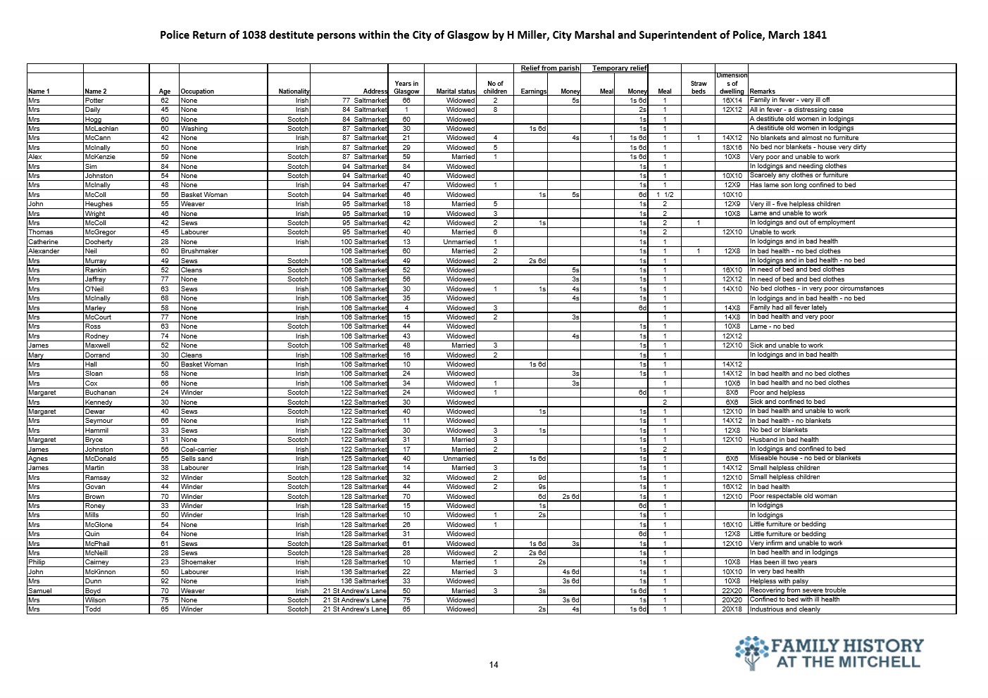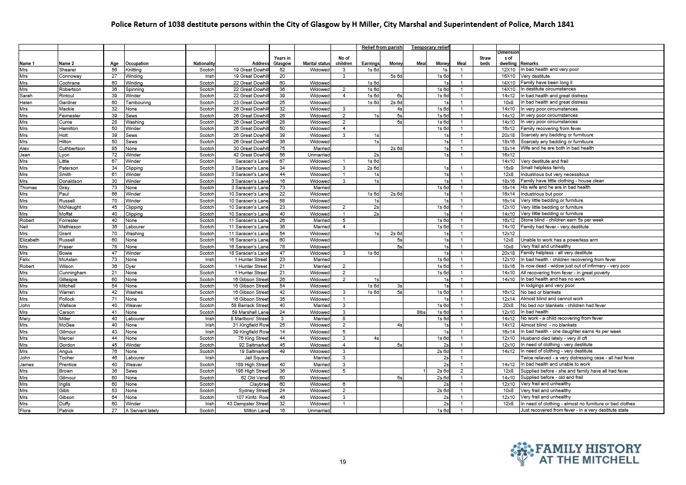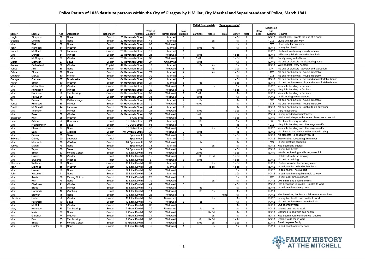 144 years after the signing of the Treaty of Union the widely promoted benefits to be gained by Scotland from placing their trust with the Westminster government were self evident in Glasgow. The police selected a few streets for a lifestyle analysis for the city fathers. The results told the true story. 182 years later a similar study would reveal that not a lot has changed.