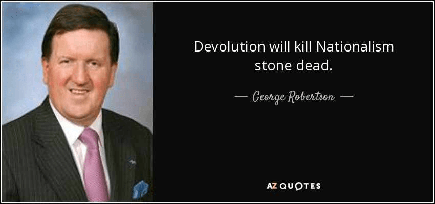 In 1995, when Scottish nationalism began to find increasing favour with Scots as their preferred choice of government Robertson, then Shadow Secretary of State for Scotland said: