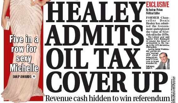 Asked about his thoughts about claims that Scotland was being subsidized by England he reminded the questioner that Joel Barnett, (he of the Barnett formula), was his deputy at the Treasury at the time the share of the national income pot Scotland should receive was decided.