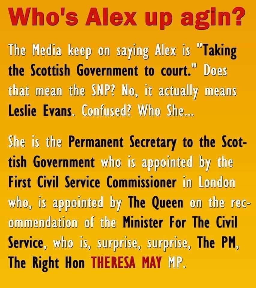 Q: You mentioned earlier that you are the reporting officer of the Permanent Secretary of the Scottish Government, Leslie Evans. Is there anything that she would not report to you or any conversations that she can have in complete privacy with the Scottish Government, with the First Minister, that you would not expect to be privy to?