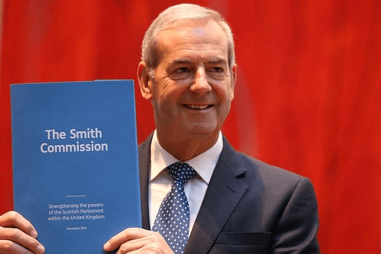 Lord Smith of Kelvin, praised Scottish political leaders for coming together after a “bruising” referendum, with a reminder that the cross-party commission had been set up after the unionist parties promised greater powers for Scotland in the event of a no vote in the independence referendum, in a pledge known as “The Vow”.