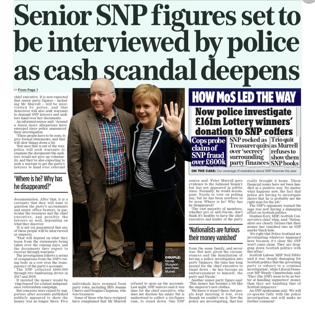 Sticking it to the SNP as it heads down electorally no doubt all in the plan. But it could get worse. The truth about Sturgeon and how out of her office came the pln to destroy Alex Salmond is still to emerge. And who in the ranks of the SNP will be caught in that expose. Angus Robertson, his alphabettie wife, and others.