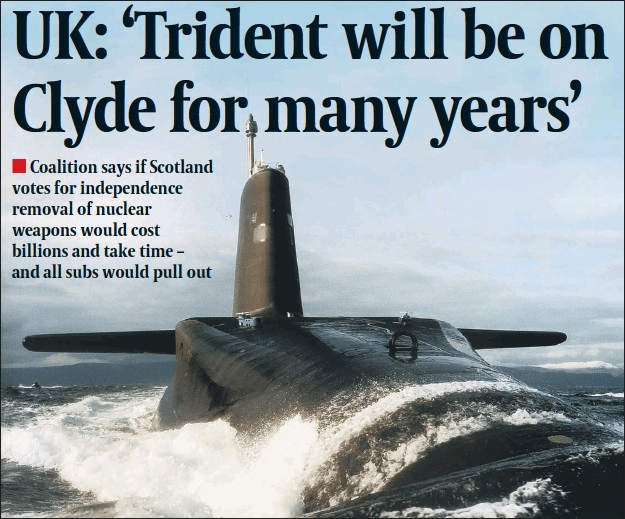 Dismissing his Labour opponent’s claim as nonsense, SNP MSP, Bill Kidd, said: “Trident is, in reality, a jobs-destroyer, and attempts to justify the presence of weapons of mass destruction on the Clyde in terms of jobs is the worst kind of nonsense, as Jackie Baillie knows only too well.” http://newsnet.scot/2012/10/baillie-trident-jobs-claim-challenged-by-official-mod-figures/