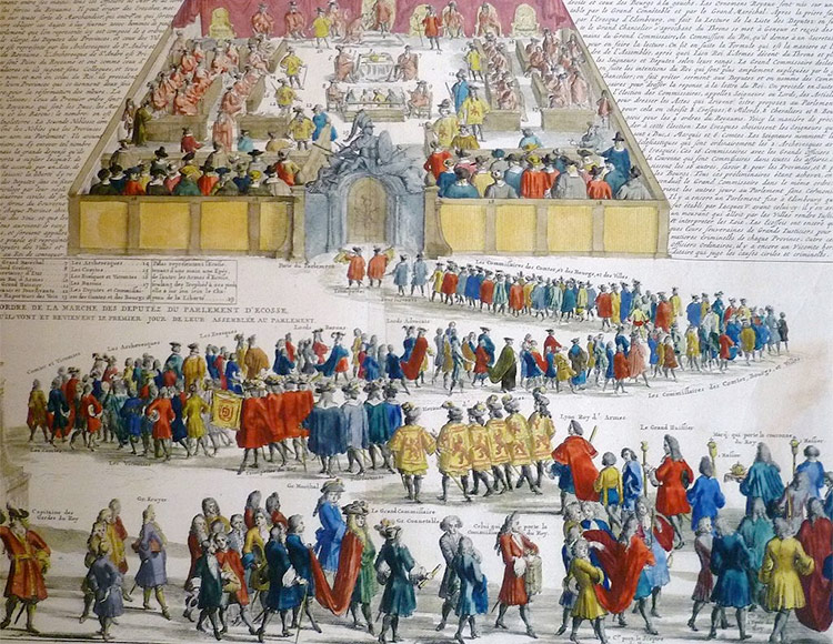 In 1702 English politicians acting for Queen Anne, William’s sister-in-law, took up negotiations with Scottish representatives seeking a union of the crowns of England and Scotland which ended in deadlock in 1704 when the Scottish parliament rejected the overtures. The English response was the immediate introduction of the “Alien Act” a wide ranging set of punative measures severely restricting Scottish trade with England and countries on the continent and the new world with the stated intention of bringing Scotland to its forcing its return to negotiations.