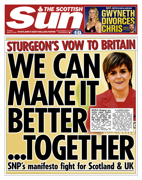 It was the judgement of the public that the decision to support the SNP had been based on blatantly obvious commercial logic. The Sun’s main competitor, the Record, being unshakably Labour, a traditional position it has taken for decades.