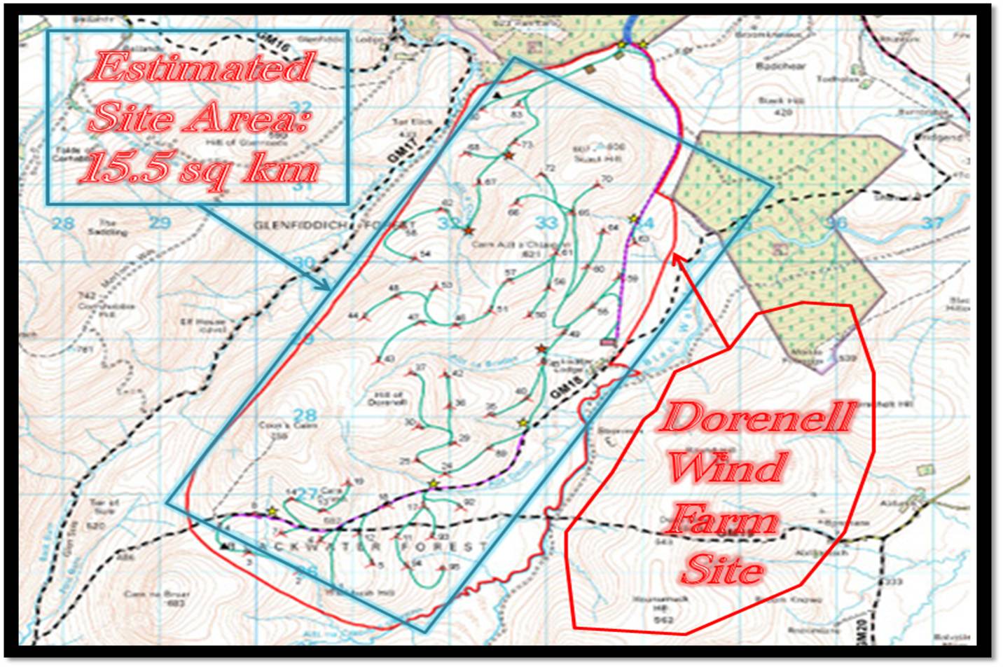 The site near Dufftown in Moray had been developed by Infinergy and consent for a 60-turbine wind farm with a capacity of up to 177MW was granted by Scottish Ministers in December 2011.