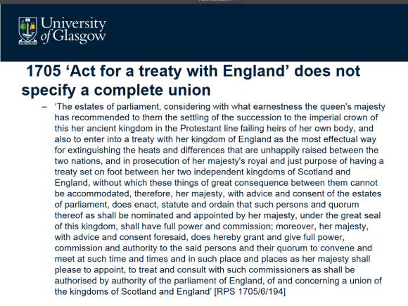 1705 “Act for a Treaty With England” did not Specify a Complete Union